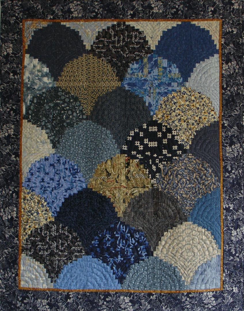 De geschiedenis van de 20e eeuw wordt voor mensen van Beps generatie gedomineerd door de Tweede Wereldoorlog. Een tijd van donkere wolken boven Nederland. De vormen op deze quilt doen aan wolken denken. Ze zijn niet allemaal zo donker en somber. Er zijn voldoende lichte tussen.
